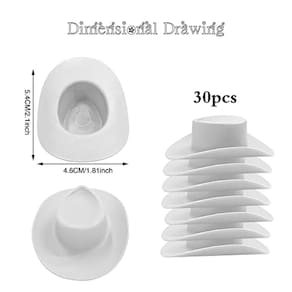 30pcs plástico mini cowboy ocidental cowgirl chapéus brancos.