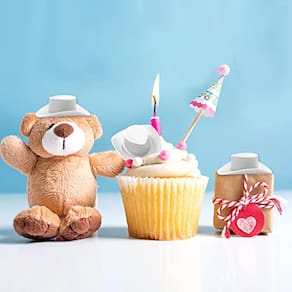Estes pequenos chapéus de plástico fazem grandes decorações para suas garrafas de vinho, estatuetas, mesas de jantar, bonecas ou seus animais de estimação.