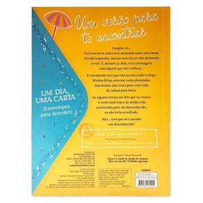 A história de amor que mudará seu verão. Uma carta por dia. 31 envelopes para descobrir. Um verão para te conhecer. Imagine só... Você encontra uma carta amassada sobre uma mesa. Decide responder, mesmo sem ela ter sido destinada a você. E, durante 31 dias, troca mensagens com alguém que não conhece... É exatamente isso que está acontecendo comigo. Minhas férias estavam todas planejadas, mas bastou uma carta para virar tudo de cabeça para baixo. Se alguém tivesse me dito que eu viveria o verão mais louco da minha vida escrevendo para um desconhecido, eu não teria acreditado. Mas... será que ele é mesmo um desconhecido? Marca: Não Informado
