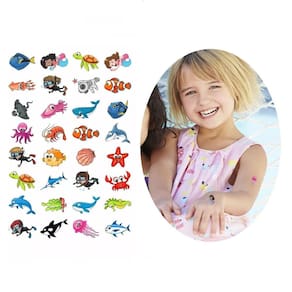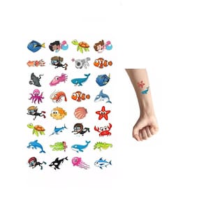 32 Tatuagens Temporárias Cartela Fundo Mar Kit Festa