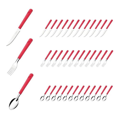 Conjunto de Talheres O conjunto de talheres de mesa da linha Luna inclui garfos, facas e colheres, cada um projetado com atenção aos detalhes e ao conforto. Esses talheres são perfeitos para jantares formais e informais, sendo duráveis e fáceis de limpar e manter. Com sua beleza atemporal e funcionalidade duradoura, o conjunto de talheres de mesa da linha Luna com cabo vermelho é uma escolha inteligente para quem busca qualidade e estilo em seus utensílios de cozinha. Tenha um conjunto completo de talheres para sua mesa, proporcionando praticidade e elegância em todos os momentos.