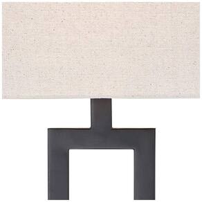 Usa uma lâmpada de base média padrão de 100 watts no máximo não incluída. Interruptor de soquete liga desliga. Candeeiro de mesa moderno da 360 Lighting. Corpo da lâmpada em metal com acabamento preto. Cordão preto. Abajur retangular de tecido off white com remate de bola Marca: Não Informado
