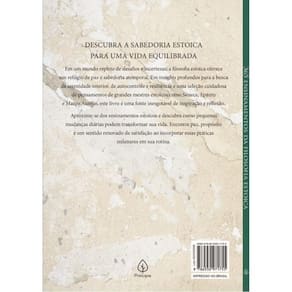 Em um mundo repleto de desafios e incertezas, a filosofia estoica oferece um refúgio de paz e sabedoria atemporal. Em insights profundos para a buscada serenidade interior, de autocontrole e resiliência e uma seleção cuidadosa de pensamentos de grandes mestres estoicos como Sêneca, Epiteto e Marco Aurélio, este livro é uma fonte inesgotável de inspiração e reflexão. Aproxime-se dos ensinamentos estoicos e descubra como pequenas mudanças diárias podem transformar sua vida. Encontre paz, propósito e um sentido renovado de satisfação ao incorporar essas práticas milenares em sua rotina.