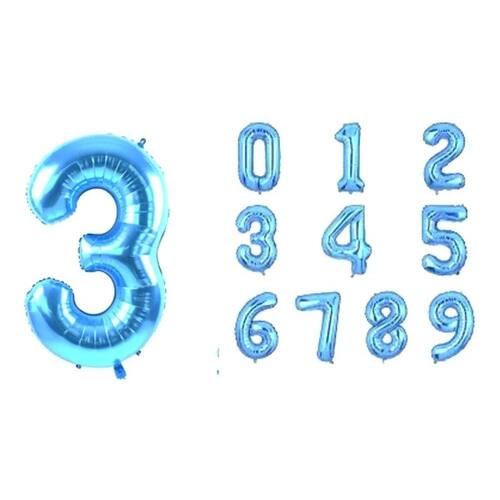 3X 1 Un Balão Bexiga Número Metalizado Azul Grande 75Cm