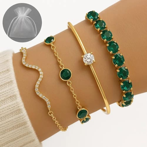 3X Conjunto 4 Peças Pulseira Bracelete Feminina Dourada E Ve