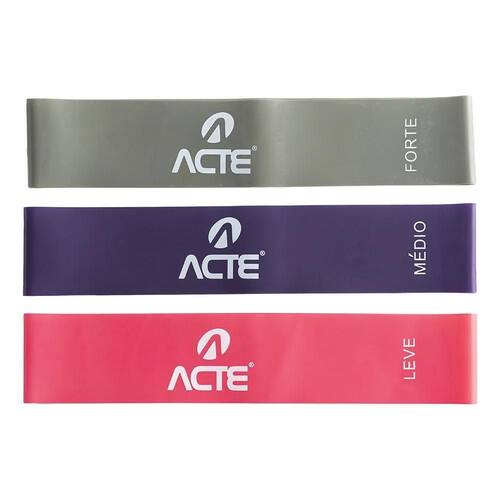 3X Kit Faixa Elastica T71-R, Yoga E Pilates, Rosa, Roxo E Ci