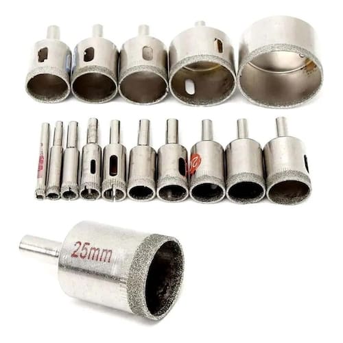3X Serras Copo Diamantadas Vidro Ceramica Etc 6-50Mm - 15 Pe