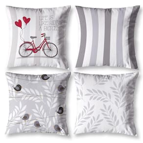 4 Almofadas Cheias Sala 40Cm X 40Cm Estampadas Bike Branco