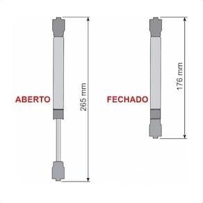 Especificações: - Acabamento: Haste cromada e corpo pintado; - Cor: cinza e prata; - Material: Ao e plástico; - Capacidade: 10 Kg; - Dimensão entre eixos: 247 mm; - Curso til: 91 mm; - Espessura de 15 mm; - Ângulo de Abertura: 75 / 90 / 110; - Não é necessário lubrificar o produto, óleos ou similares podem danificar o pistão. O alinhamento na instalação é importante para o funcionamento adequado; - Garantia e qualidade Cermag; - Fórmula para calcular a força ideal que irá precisar para seu pistão: 6 x Peso x Altura / 1000; - Exemplo uma porta de MDF 15mm, com altura de 600mm e peso de 2,6kg: - 6 x 2,6 x 600/1000 = 9,36kg. - Ou seja, neste caso o pistão ideal é o de 10kg ou 100N . - Utilize 2 pistões em caso de portas com peso superior até o dobro dos valores indicados na tabela: - Para portas de 6 kg - Utiliza-se um Pistão a Gás de 60 N;