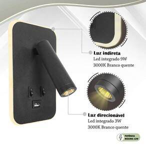 Esta arandela apresenta um design elegante e versátil, ideal para quartos, salas e escritórios. Seu foco direcionável permite ajustar a iluminação conforme a necessidade, sendo perfeita para leitura ou destaque de objetos decorativos. Além disso, conta com LED integrado nas bordas, proporcionando uma iluminação suave e indireta, criando um efeito aconchegante no ambiente.