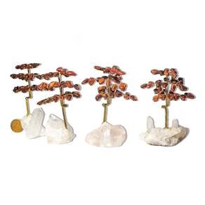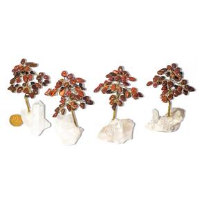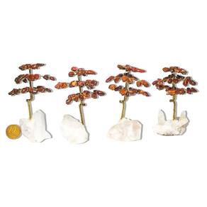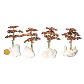 Conjunto com 4 unidades de Árvores da Felicidade feitas manualmente com pedras naturais de Jaspe Vermelho roladas. Cada peça é cuidadosamente montada com galhos de arame torcido e base em Drusa de Cristal natural de garimpo. Ideal para decoração, presentes ou revenda em lojas de itens naturais, esotéricos e artesanais. Destaques do Produto: