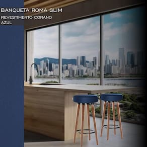 4 Bancos Banquetas Roma Slim Redonda Alta 70cm Azul - Azul Marinho