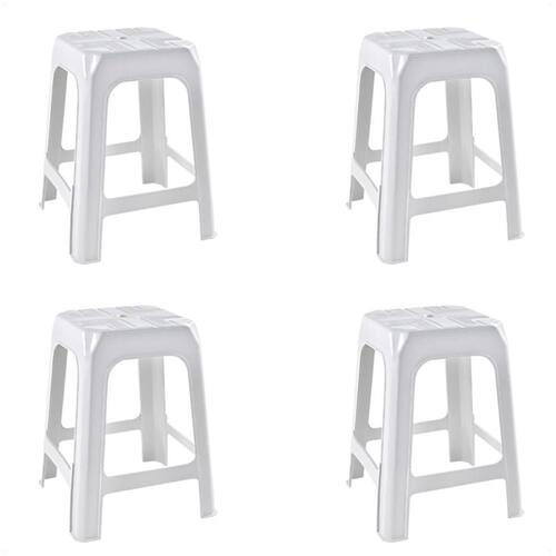 4 Banquetas Banco Plástico Resistente Branco Empilhável 46Cm