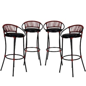 4 Banquetas Havaí Em Fio De Fibra Artesanal Para Bancada, Balcão, Lanchonete - Preto Vermelho