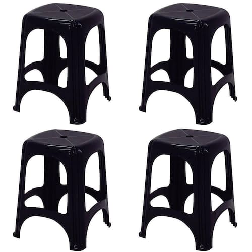 CONJUNTO COMPOSTO POR 4 UN - BANQUETA TRAMONTINA NITERÓI ECO EM POLIPROPILENO PRETO 45 CM 92411009