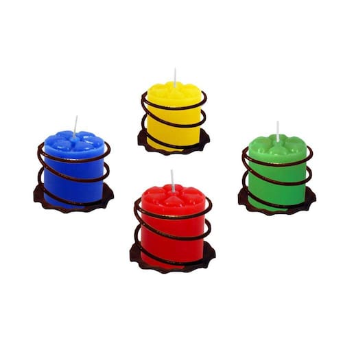 4 bases espiral 4 velas Coroa Advento Candelabro cores 4 4 bases espiral 4 velas noturnaAcompanha 4 velas nas cores: 1 amarela, 1 azul marinho, 1 verde e 1 vermelhaMarca Velitas Medidas da Armação de metalAltura: 5 cm e Largura: 7 cm Profundidade: 7 cm Vela 100% ParafinaPintura eletrostática de alta durabilidade Bases:Peças em ferro com pintura eletrostática, que garante uma maior resistência e durabilidade em comparação com peças esmaltadas ou com pintura spray. Pintura marrom escura, quase preta, com minúsculos pontos pretos e dourados. A pintura dá um efeito especial a peça.Peça produzida de forma artesanal. Vela:Vela de parafina pura A vela pura garante uma maior durabilidade, não produz fumaça preta que possa sujar a parede ou criar um aspecto desagradável, e também possui um cheiro suave e natural da parafina. Duração da vela:Aproximadamente 12 horas, o tempo pode variar de acordo com a temperatura ambiente. Medidas das velas:Altura: 4,8 cm diâmetro: 5 cm Imagens meramente ilustrativas, o produto pode apresentar pequenas variações por se tratar de um produto artesanal. Aviso de segurança:Acenda as velas longe de produtos inflamáveis, de corrente de ar e em recipiente protetor.Não deixe velas acesas desacompanhadas.