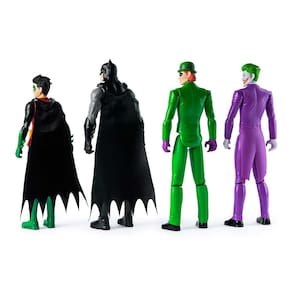 Descrição: "Aventura Heróica: Prepare-se para embarcar em uma aventura épica com os personagens mais famosos do universo do Cavaleiro das Trevas. Junte-se ao Batman e Robin para enfrentar os vilões mais temidos, como o Charada e o Coringa. Com visuais autênticos tirados diretamente dos quadrinhos, o Palhaço Príncipe do Crime e seu ajudante, o Charada, estão prontos para causar o caos nas suas brincadeiras, enquanto o Batman e o Robin lutam para detê-los. As figuras vêm com pontos de articulação, permitindo uma variedade de poses dinâmicas para recriar cenas de ação emocionantes e estimular a imaginação. Seja para colecionar ou para brincar, estas figuras são um presente perfeito para os fãs do Batman e seus aliados enfrentando seus arqui-inimigos." Características: Marca: Sunny Brinquedos Referência: 4185 Idade recomendada: A partir de 3 anos Pilhas Inclusas? Tipo de Pilha/Bateria Não necessita de pilhas Possui Luzes: Não Possui Sons: Não Dimensões aproximadas da embalagem: 31,7 x 40,5 x 6,2cm (A x L x C) Garantia: 3 meses a contar da emissão da procedência garantida Embalagem: Conteúdo da embalagem: 4 Bonecos de 30cm Certificado Inmetro: REGISTRO 006748/2021 Produtos de decoração não inclusos. Imagens meramente ilustrativas. As cores dos objetos podem sofrer alterações devido a luminosidade, configurações do monitor e até mesmo a percepção do usuário.