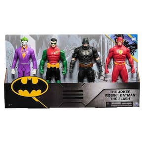 Descrição: Se junte com os personagens mais famosos do mundo da DC Comics! Escolha entre o cavaleiro das trevas Batman, o garoto prodigio Robin, o velocista escarlate Flash e até o palhaço principe do crime Coringa! As figuras são altamente detalhadas e articuladas com 15cm de altura para deixar a sua experiência ainda mais emocionante e única! Brinque com os seus personagens favoritos e tenha uma diversão sem fim! Características: Marca: Sunny Brinquedos Referência: 4180 Idade recomendada: A partir de 3 anos Pilhas Inclusas? Tipo de Pilha/Bateria Não necessita de pilhas Possui Luzes: Não Possui Sons: Não Dimensões aproximadas da embalagem: 16,4 x 30,5 x 3,6cm (A x L x C) Garantia: 3 meses a contar da emissão da procedência garantida Embalagem: Conteúdo da embalagem: 4 Bonecos Certificado Inmetro: REGISTRO 006748/2021 Produtos de decoração não inclusos. Imagens meramente ilustrativas. As cores dos objetos podem sofrer alterações devido a luminosidade, configurações do monitor e até mesmo a percepção do usuário.