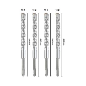 4 Brocas Sds Plus 18X400 Mm Aço Carbono Tungstênio Martelete