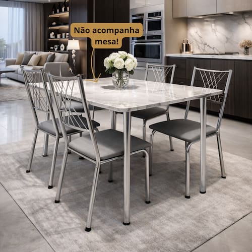 ATENÇÃO: MESA NÃO ESTÁ INCLUSA NESTE ANÚNCIO!ATENÇÃO: A MESA NÃO ESTÁ INCLUSA NESTE ANÚNCIO! Kit de Cadeiras Cromadas com Assento Estofado Marrom – Modernas e ResistentesRenove sua sala de jantar, cozinha ou área gourmet com este kit de cadeiras modernas, elegantes e altamente resistentes. Com estrutura em aço cromado, as cadeiras oferecem durabilidade, estabilidade e um acabamento sofisticado.O assento estofado em material sintético proporciona conforto no uso diário, além de ser fácil de limpar e manter. O encosto com design vazado traz leveza visual e combina com diversos estilos de decoração — moderno, industrial ou clássico.Perfeito para famílias, ambientes comerciais, restaurantes, lanchonetes, escritórios e áreas gourmet, garantindo beleza, conforto e excelente custo-benefício.Diferenciais do ProdutoEstrutura em aço cromado resistenteAssento estofado confortável e eleganteDesign moderno e versátilFácil limpeza e manutençãoLeves, firmes e duráveisIdeais para casa ou comércioÓtima opção para conjuntos de mesaCaracterísticas TécnicasEstrutura: Aço cromadoAssento: Estofado em material sintéticoEstilo: ModernoUso: Residencial e comercialProduto novo e de excelente qualidadePeso Suportado: Até 140 KgOpções de KitKit com 2 CadeirasKit com 4 CadeirasKit com 6 CadeirasIndicado paraSala de jantar, cozinha, área gourmet, restaurante, lanchonete, escritório, salão e comércio em geral.ATENÇÃO: MESA NÃO ESTÁ INCLUSA NESTE ANÚNCIO!.....tagsSala de jantar Móveis Refeição Conjunto Conforto Decoração Design Estrutura Clássico Retrô Vinílico Limpeza Durabilidade Versátil Reunião Mesa Macio Lavável Simples Funcional Convivência Praticidade Espaço Resistência Elegante Compactos Organização Moderno Interior Residencial Cozinha Apartamento Casa Lar Revestido Assento Encanto Sofisticação Beleza Aconchego Ergonomia Estabilidade Utilidade Harmonia Qualidade Conjunto familiar Convivialidade Estilo industrial Estilo minimalista Contemporâneo Tradicional Charme Requinte Acabamento Resistível Leveza Compacto Confortável Design ergonômico estofada confortável luxo elegante acolchoada resistente durável versátil ergonômica sofisticada premium compacta design decorativa moderna reforçada funcional qualidade minimalista prática contemporânea clássica revestida decor beleza gourmet varanda apartamento ambiente salao restaurante bar escritório comercial evento recepção refeitório hotel pousada couro courino fibra sintetica junco impermeável aço metalica ferro tubolar suporta peso Marca: Não Informado Marca: Não Informado Marca: Não Informado