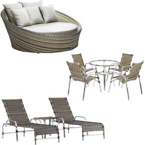 4 Cadeiras + 2 Mesa + 2 Espreguiçadeiras + 1 Chaise Trama Capuccino - Blush
