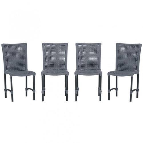 4 Cadeiras de Jantar Cannes de Alumínio com Pintura Preta e Trama Tela de Corda Náutica - Prata