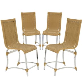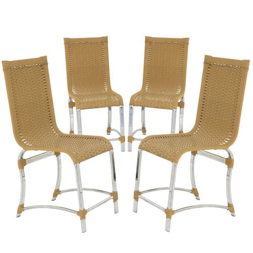 4 Cadeiras De Jantar Haiti Para área Interna E Externa Em Alumínio Polido E Fibra Sintética - Ráfia