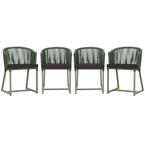 4 Cadeiras De Jantar Noronha Fendi Corda Náutica E9 Trama Verde