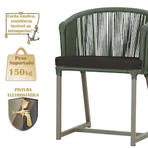 Descubra a Elegancia e Durabilidade da Cadeira Noronha. Combinando estilo e resistencia, esta cadeira traz o melhor do design contemporaneo em aluminio com micro pintura e acabamento em corda nautica. O estofado impermeavel completa o conforto e a funcionalidade, tornando-a ideal para ambientes externos e internos. Qualidade e elegancia que transformam qualquer espaco. Adicione um toque de sofisticacao e conforto ao seu espaco com a cadeira Noronha.