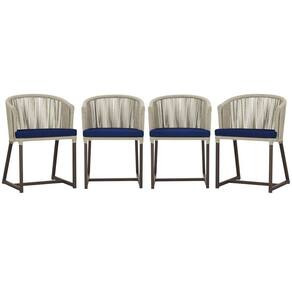 4 Cadeiras De Jantar Noronha Marrom Corda Náutica E10 Trama Rami