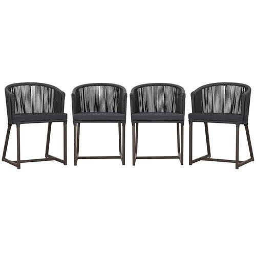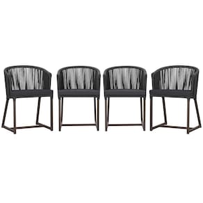 4 Cadeiras De Jantar Noronha Marrom Corda Náutica E11 Trama Preto