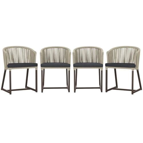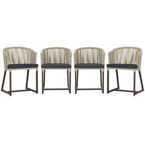 4 Cadeiras De Jantar Noronha Marrom Corda Náutica E11 Trama Rami