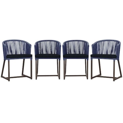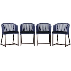 4 Cadeiras De Jantar Noronha Marrom Corda Náutica E12 Trama Azul