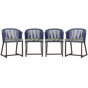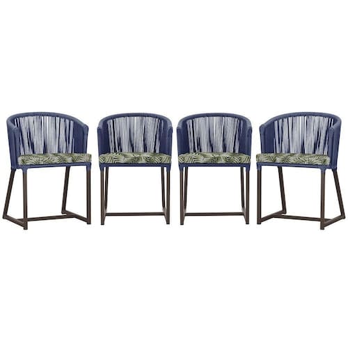 4 Cadeiras De Jantar Noronha Marrom Corda Náutica E5 Trama Azul