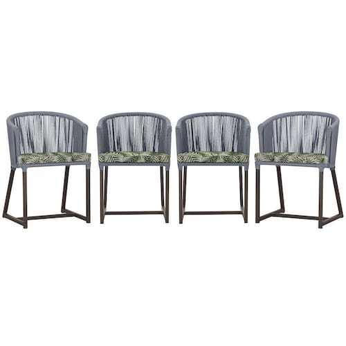 4 Cadeiras De Jantar Noronha Marrom Corda Náutica E5 Trama Prata