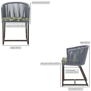 Antes de comprar o seu produto verifique as medidas, o onde pretende instalar e se necessario contratar o servico de um qualificado. Produto conhecido como: Cadeira Noronha, Cadeira de aluminio, Corda nautica, Estofado impermeavel, Moveis de exterior, Cadeira resistente a agua, Design moderno em Cadeira, Cadeira para area externa, Cadeira de jardim, Moveis para varanda, Cadeira duravel, Cadeira de alta qualidade, Conforto em Cadeira, Cadeira elegante.