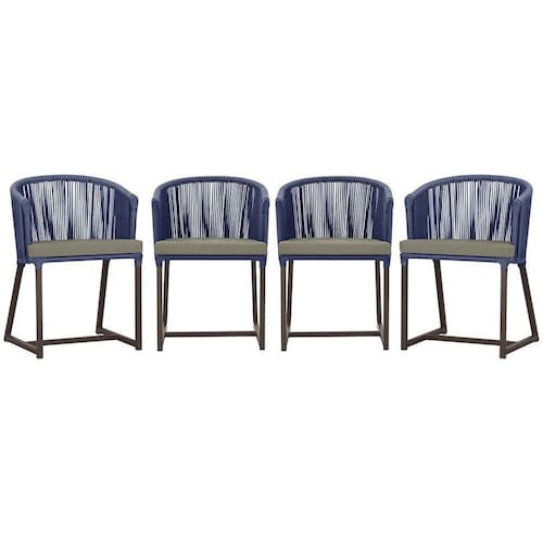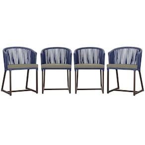 4 Cadeiras De Jantar Noronha Marrom Corda Náutica E8 Trama Azul