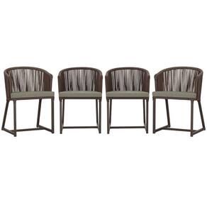 4 Cadeiras De Jantar Noronha Marrom Corda Náutica E8 Trama Marrom