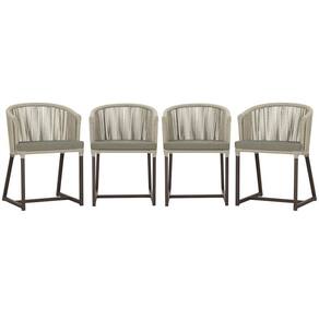 4 Cadeiras De Jantar Noronha Marrom Corda Náutica E8 Trama Rami