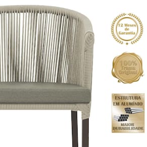 Descubra a Elegancia e Durabilidade da Cadeira Noronha. Combinando estilo e resistencia, esta cadeira traz o melhor do design contemporaneo em aluminio com micro pintura e acabamento em corda nautica. O estofado impermeavel completa o conforto e a funcionalidade, tornando-a ideal para ambientes externos e internos. Qualidade e elegancia que transformam qualquer espaco. Adicione um toque de sofisticacao e conforto ao seu espaco com a cadeira Noronha.