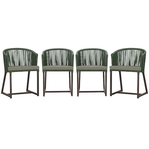 4 Cadeiras De Jantar Noronha Marrom Corda Náutica E8 Trama Verde