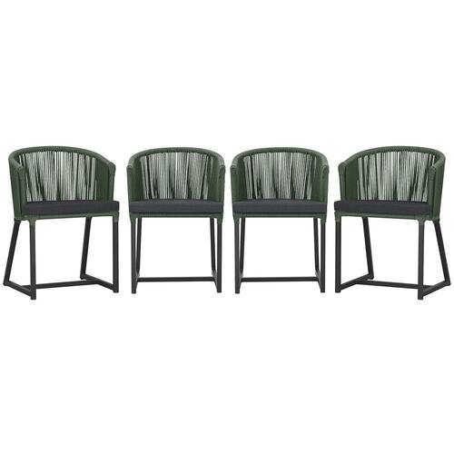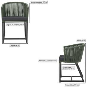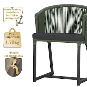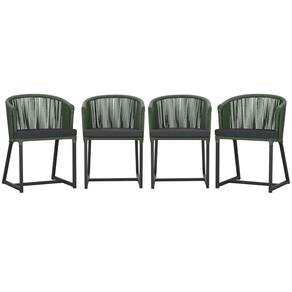 4 Cadeiras De Jantar Noronha Preta Corda Náutica E11 Trama Verde