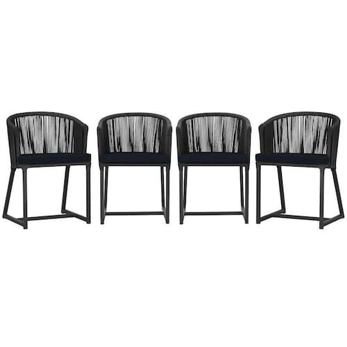 4 Cadeiras De Jantar Noronha Preta Corda Náutica E12 Trama Preto