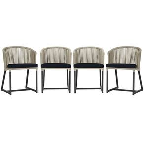 4 Cadeiras De Jantar Noronha Preta Corda Náutica E12 Trama Rami