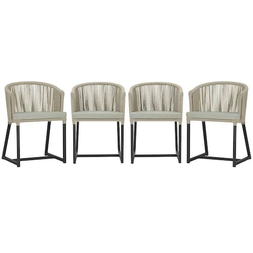 4 Cadeiras De Jantar Noronha Preta Corda Náutica E3 Trama Rami