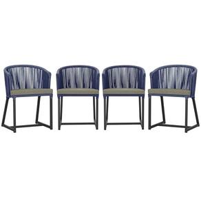 4 Cadeiras De Jantar Noronha Preta Corda Náutica E8 Trama Azul