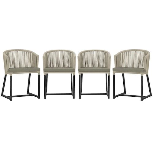 4 Cadeiras De Jantar Noronha Preta Corda Náutica E8 Trama Rami