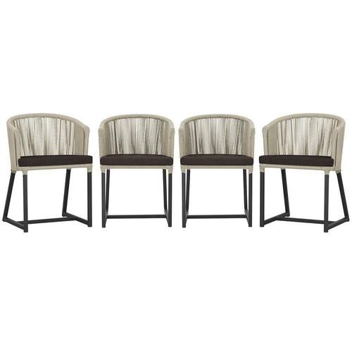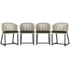 4 Cadeiras De Jantar Noronha Preta Corda Náutica E9 Trama Rami