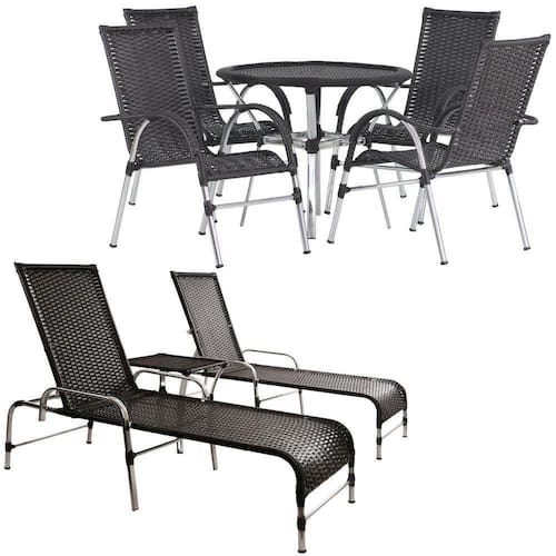 Itens Incls: 04 Cadeiras Venus 01 Mesa Emily com tampo do 02 Espreguicadeiras Catar 01 Mesa Garden