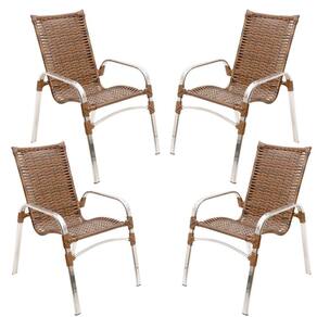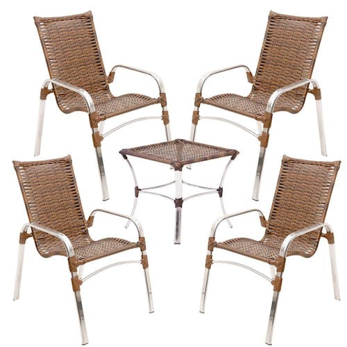 4 Cadeiras e Mesa Área Emily Alumínio Piscina, Jardim - Marrom